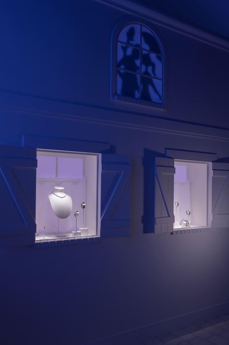 展覽伊始,最吸引目光的是「浪漫愛情故事」,自1895年Alfred Van Cleef與Estelle Arpels結為連理以來,「愛」一直是品牌創作的核心,此處展出了Lady Arpels Pont des Amoureux系列及全新變奏,面盤化身巴黎橋景,透過逆跳機芯呈現戀人在午夜與正午相會的瞬間。另一個亮點Lady Arpels Bal des Amoureux Automate則將場景轉換至19世紀法式露天舞會,四年的研發讓面盤上的戀人可隨按鈕甦醒並互相傾身,機械與情感在這裡完美交融。