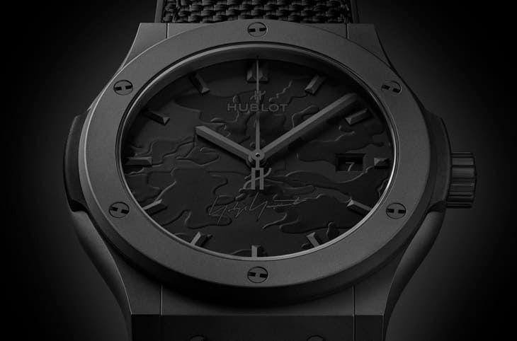 ▲迷彩面盤採獨家硫化工藝呈現黑上黑層次,立體紋理中於六點鐘方向低調點綴藝術家簽名。