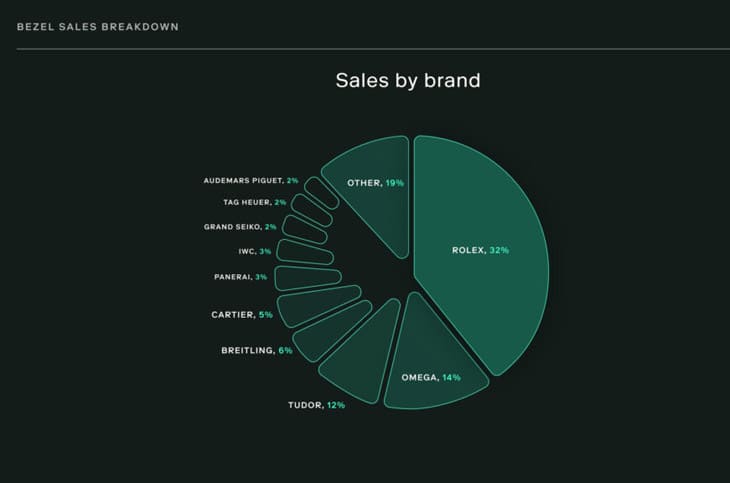 ▲即便爭議不斷,勞力士仍穩坐市場王者,以32%交易量拿下該平台年度銷售第一。Source:Bezel