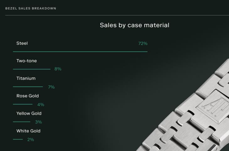 ▲市場回歸實用導向,鋼殼手錶依舊最受青睞,在Bezel交易占比高達72%,穩居主流。Source:Bezel