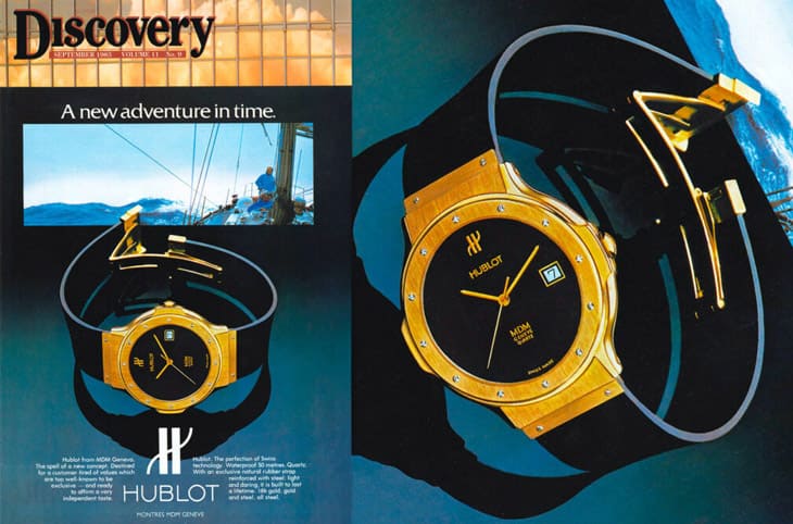 真正讓橡膠跨進高級製錶領域的轉捩點,出現在1980年,宇舶推出搭配天然橡膠錶帶的黃金手錶,直接挑戰當時對奢華材質的既定想像,18K金錶殼配上黑色橡膠帶,在當年堪稱離經叛道,卻也開啟了「材質融合」的全新思路。從那一刻起,橡膠不再只是工具錶的附屬品,而是一種可以與貴金屬並列、甚至成為設計重點的材質。