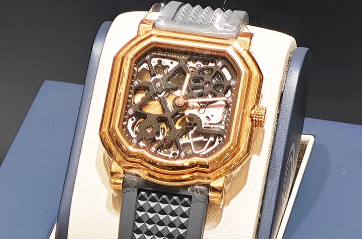 對於偏好複雜功能的收藏家而言,Maestro 8.0 Squelette與Maestro 9.0 Tourbillon更具吸引力,品牌現任創意總監Octavio Garcia曾與Genta共事,對品牌風格掌握精準,Maestro 8.0 Squelette的鏤空機芯以星圖為靈感,透過噴砂與拋光交錯,營造立體層次,微型自動盤設計讓整體厚度得以控制,同時保留高度通透感,機械運作清晰可見。