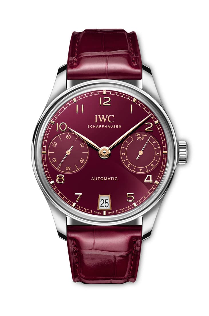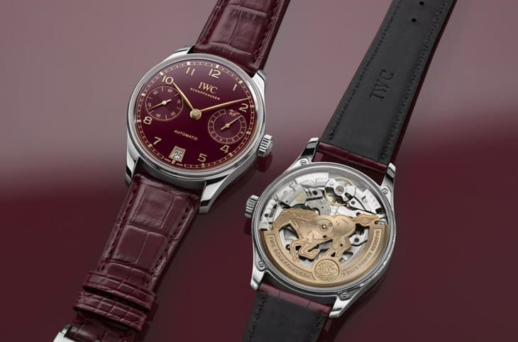 相較於宇舶的張揚,IWC萬國錶則選擇在經典中注入巧思。Portugieser葡萄牙系列自動錶42馬年特別版,維持了系列一貫的優雅對稱佈局,但換上了象徵喜慶的酒紅色面盤,搭配金色指針與時標,流露出一股成熟的貴氣,IWC將生肖元素處理得相當含蓄,面盤上看不見具象的馬,而是將驚喜藏於錶背,透過藍寶石水晶底蓋,可以看見52011機芯的鍍金自動盤被雕琢成一匹奔騰的駿馬造型,隨著佩戴者的手腕擺動而旋轉上鍊,寓意著源源不絕的動力與生機。
