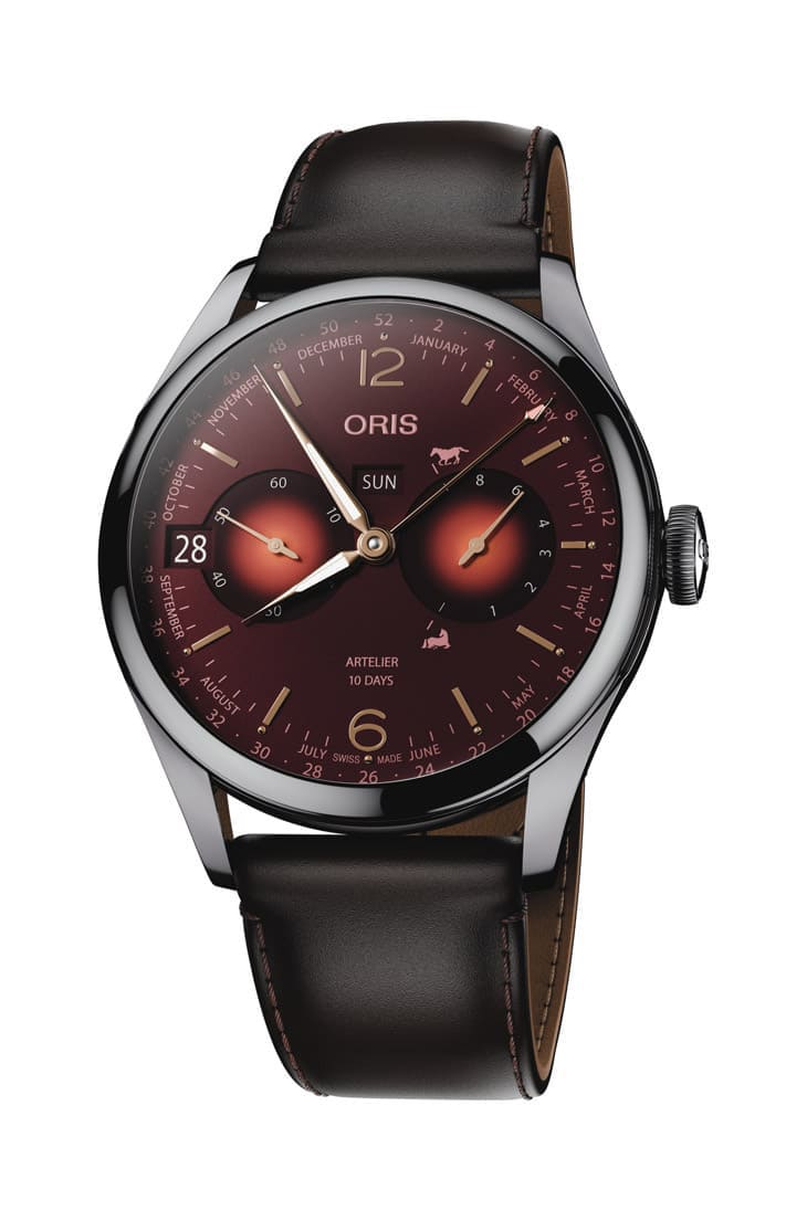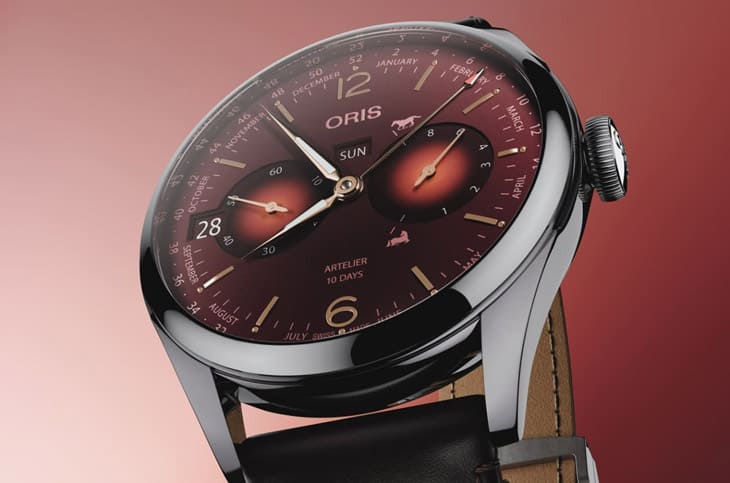 ORIS以一種充滿趣味的機械語言來詮釋馬年,新款Artelier馬年生肖錶錶採用深沉的酒紅色面盤,但最絕妙的設計在於其動力儲存顯示,ORIS利用非線性動力儲存顯示機制,將指針的刻度轉化為馬匹的狀態:當動力滿載時,指針指向一匹奔跑的馬;而當動力不足時,則指向一匹休息的馬,這種直覺又帶點幽默感的設計,讓佩戴者能與機械機芯產生更緊密的互動,搭配質感的馬臀皮錶帶,由內而外都緊扣主題。