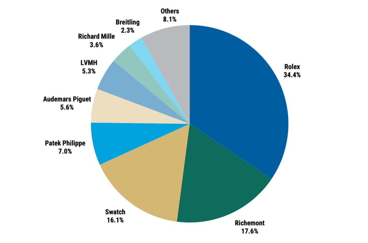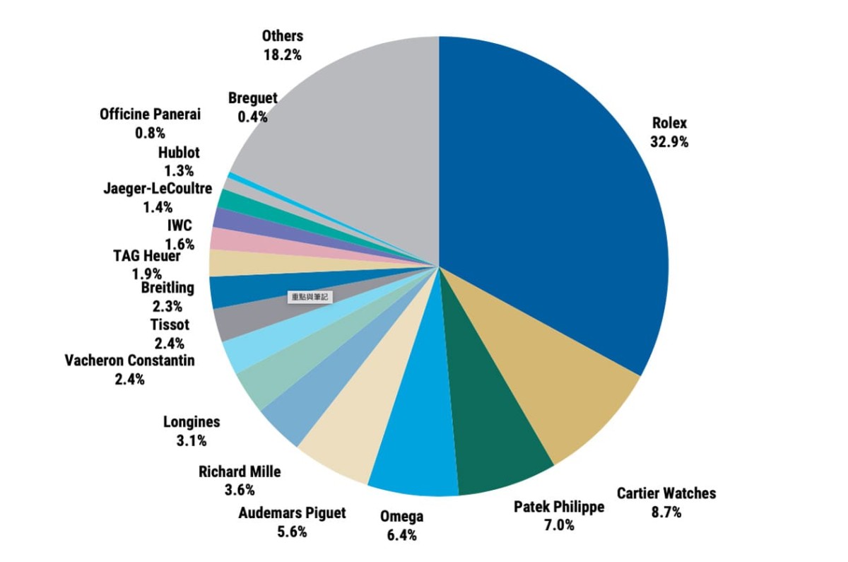 ▲2025年瑞士鐘錶產業「品牌」市佔率圓餅圖。Source:LuxeConsult, Morgan Stanley