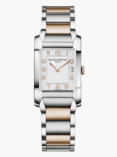 名士最具標誌性的漢伯頓系列手錶今年迎來兩款女裝新品。曲線流暢的錶殼和圓弧形藍寶石水晶玻璃,無不展現女性的柔美和歷史錶款的精神傳承,此款矩形手錶無疑是和諧之美的化身。18K紅金與精鋼和諧配搭,珍貴材質交相輝映,無不顯示著手錶奢華而庄重的設計風格,亦為新春時節增添了一抹華美的金色。手錶搭載瑞士製造石英機芯,長34.5毫米、寬22毫米、厚9毫米,配備小時指示功能,3點位置設有日期顯示,並具有50米防水功能。緞面拋光雙色錶鍊,搭配三重摺迭式安全錶扣。