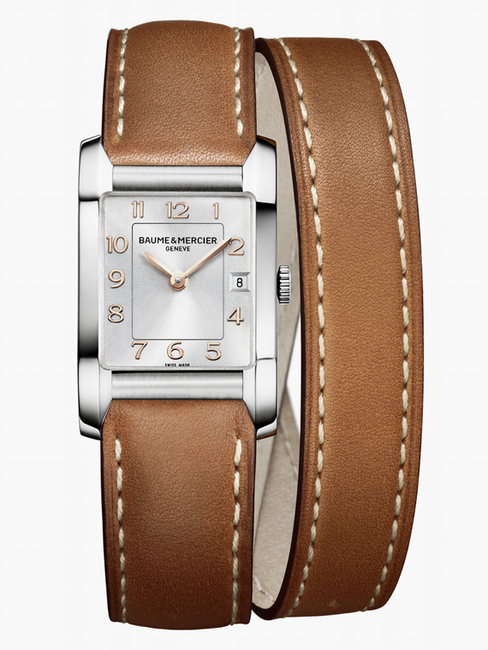 漢伯頓女裝手錶的比例和諧大方,勾勒出令人心醉神迷的線條。手錶採用緞面拋光精鋼材質,裝飾金色阿拉伯數字的銀色錶盤脫穎而出,極富女性魅力。手錶做工精緻而細膩,搭載瑞士製造石英機芯,並設有日期顯示。漢伯頓女裝手錶的精巧造型完美貼合纖纖手腕,佩戴舒適。棕色小牛皮雙圈錶帶,點綴原色縫線裝飾,搭配傳統針式錶扣,展現柔美而感性的曲線。此款傑作俏皮而不失優雅,令人眼前一亮的錶帶設計更是令這款手錶成為時髦女性搭配服飾的最佳拍檔。