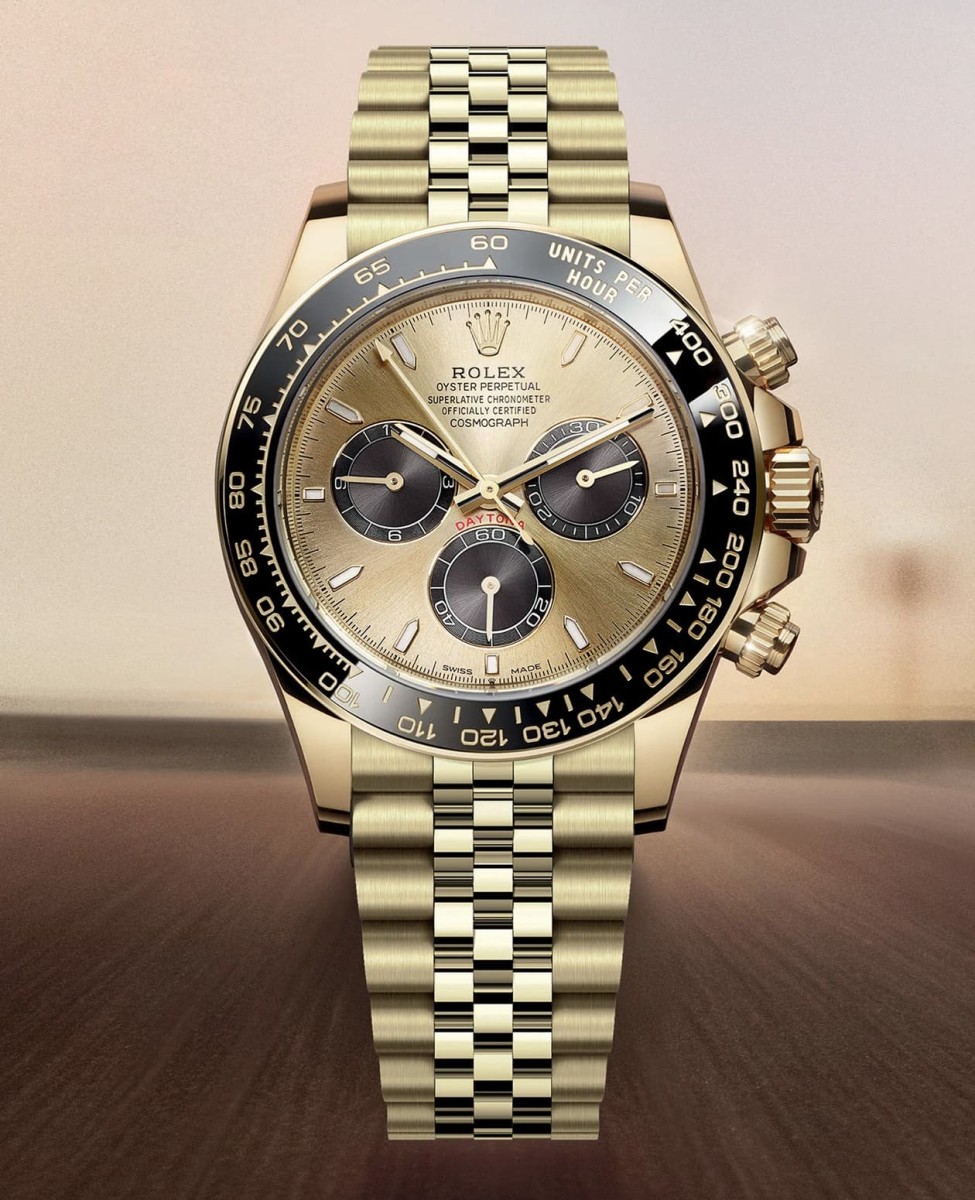 這是一個純粹建立在錶迷渴望上的預測!如同GMT-Master II系列提供五珠帶(Jubilee bracelet)選項,Monochrome認為將五珠帶導入Daytona系列將會帶來誘人的視覺效果,預測假想圖中包含了不鏽鋼熊貓面、黃金綠面(John Mayer 2.0)、白金藍面,甚至還構想出從未出現過、配備黑色陶瓷圈的黃金材質五珠帶款式。