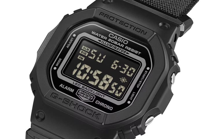 至於佩戴感受方面,DW-5600MNC依舊維持5600系列一貫的輕量特色,整體重量約53克,幾乎和經典5600系列相同,換句話說,雖然加入新錶帶設計,但輕盈與耐操的核心體驗依然沒有改變,G-SHOCK為了讓布面錶帶與錶殼結構完美結合,這個系列還搭配專屬轉接器設計,使錶帶角度更自然,也讓整體視覺更完整。