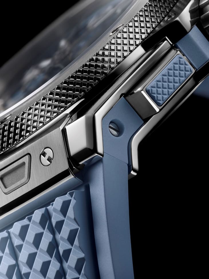 回頭看整個系列,「潮蒼藍」並不只是新顏色這麼簡單,而是一種整體策略。從材質來看,鈦金屬、不鏽鋼與橡膠的搭配,延續品牌一貫的「融合的藝術」,從設計來看,幾何外殼與柔和色調形成強烈對比,從機芯來看,自製與高頻技術並行,展現機械實力。這樣的組合,其實就是HUBLOT自1980年代以來不斷強調的核心理念,也就是打破界線,而在2026年,這個概念被重新詮釋:不再只是材質衝突,而是生活風格的融合。