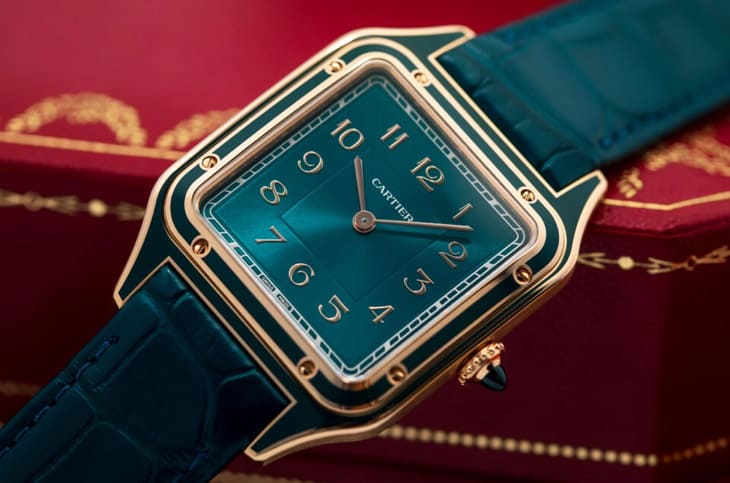 但新一代選擇反其道而行:回歸經典比例,卻在細節上玩出新花樣,像是:更大膽的面盤色彩、漆面處理的錶殼、霧面質感的錶帶、經過重新詮釋的阿拉伯數字時標等等,尤其是將漆藝嵌入錶殼這件事,幾乎已經成為近年卡地亞的標誌性設計。這些變化沒有一個是「必要的」,但全部加在一起,就讓整只錶呈現出完全不同的氣質。