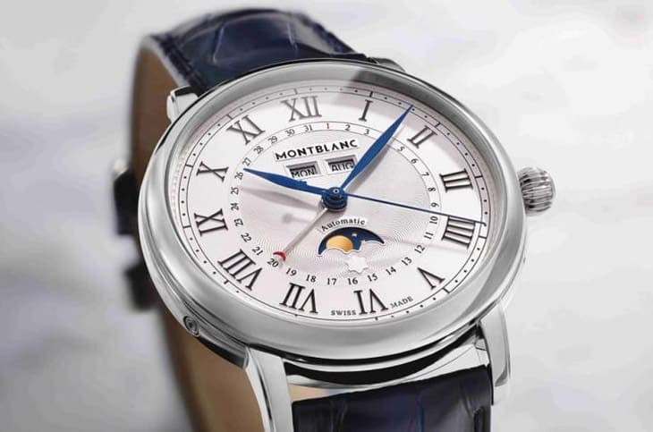 全日曆在日期與星期之外,再加入月份(很多款也會加上月相顯示),讓手錶多了一層「時間敘事」,雖然月相在現代生活中未必實用,但那種詩意,是其他功能無法取代的,像萬寶龍的Star Legacy系列,就透過視窗+指針混合顯示,把資訊整理得清楚又優雅。多數全日曆會採用模組化設計,例如搭配Sellita機芯與Dubois-Dépraz模組,讓複雜功能更容易普及,也降低維護門檻。