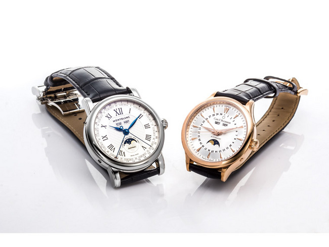 ▲ 左為MONTBLANC Star Quantieme Complet,左為CARL F. BUCHERER Manero MoonPhase。