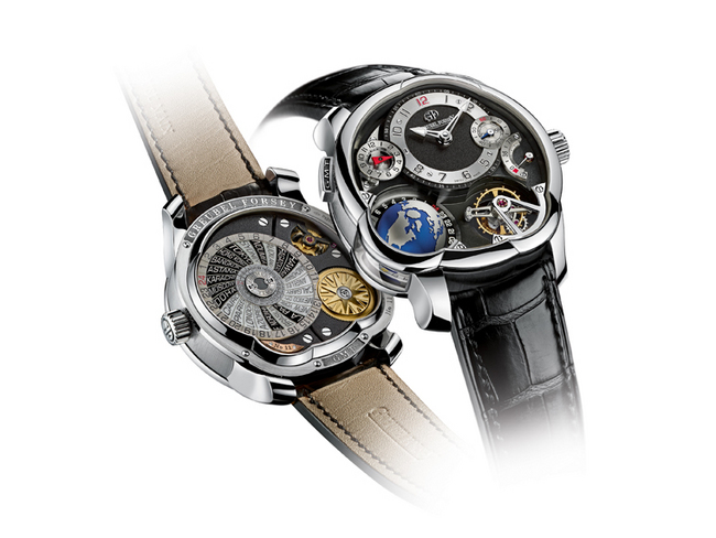 2011年,GREUBEL FORSEY高珀富斯憑他們充滿創新意念的GMT手錶,從技術、美學及實用性多方面在GMT兩地時間手錶中刮起革新旋風。搭載著高精準度、傾斜25度每一圈以24秒高速旋轉的陀飛輪機芯,GREUBEL FORSEY GMT手錶於2014年換上鉑金新裝,以另一形象示人。