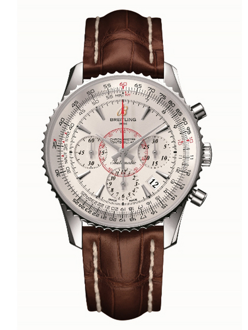 Montbrillant 01計時手錶兼備BREITLING自家研製的自動上鏈計時01機芯,精準可靠,性能卓越。獨家的環形飛行滑尺,復古的18K金「B」字標誌,經典的1/100小時刻度中心計時器,每一個精心打造的細節都在向上世紀四、五十年代的傳奇致敬。拋光精美的精鋼錶殼與沉穩的棕色錶帶環繞腕間,搭配纖細指針和立體時標於水銀色錶盤上,更添優雅迷人的氣息。