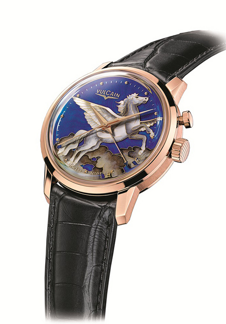 VULCAIN為慶祝北京專門店隆重開幕,並適逢2014年甲午馬年之將臨,特別精製50s President's Pegasus (飛馬)掐絲琺瑯響鬧手錶限量系列,以象徵智慧及學問的天馬,表現錶廠駕馭傳統鐘錶製作及琺瑯工藝的造詣。
