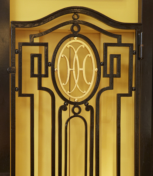 蓋在Arceau Lift的陀飛輪框架和發條鼓搭橋上的雙 H 圖案飾紋,將總店店內極具代表性的室內設計飾紋重新演繹。這項於20世紀初期大行其道的鍛鐵工藝,可見於店內一連串的裝飾細節上,包括扶手、欄桿、入口——還有後來於1923年安裝的升降機門,愛馬仕首枚飛行陀飛輪手錶亦因此而得名。 Lift不只是一個啟發其他後世創作的圖案,並象徵Hermès和Hollande兩個家族於1900年結下的情誼。當年,品牌創辦人孫兒Emile Hermès和Julie Hollande結下婚盟。