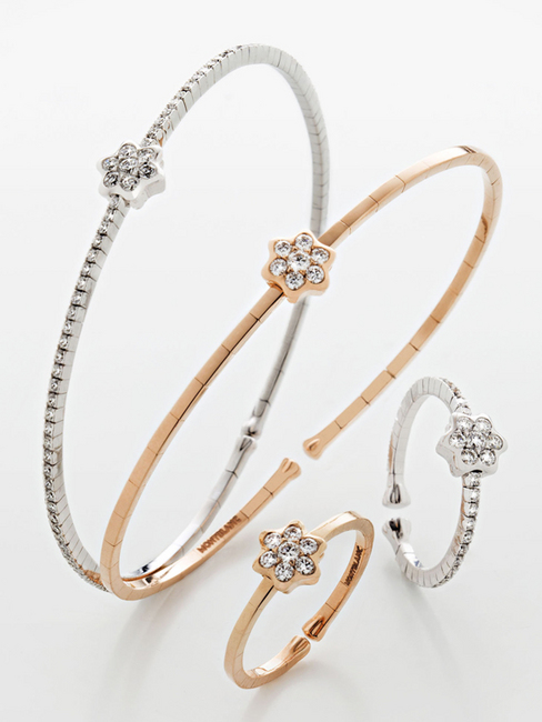萬寶龍Souvenir D'Etoile系列女仕珠寶,以品牌經典六角星造型訴說「妳是我心中永誌難忘的那道星光」,為你向心中摯愛傳達最甜蜜浪漫的愛情宣言。六角星標誌密鑲鑽石,彰顯品牌精湛的珠寶工藝,細膩作工在在襯托此系列絕美秀麗、珍貴不凡的迷人價值。以玫瑰金或白金打造的戒指與手環,可單獨佩戴或是同時搭配,為喜愛時尚的品味女性獻上完美禮讚。每日佩戴,彷彿甜蜜的愛情印記,以璀璨光芒陪伴她享受生活中每個動人時刻,更象徵你倆永誌不渝的浪漫情感。