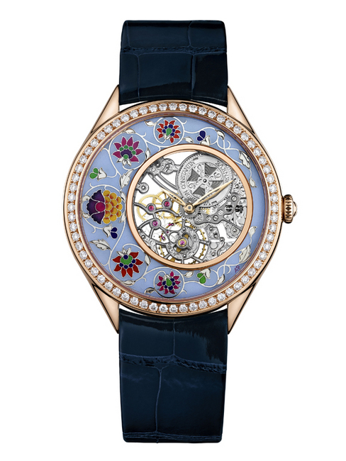 Métier d'Art藝術大師「Fabuleux Ornement傳奇裝飾」系列手錶帶領時尚女性重新發現裝飾藝術的魅力,珍貴而精密的機芯讓您感受時間的律動。中國及其古老的刺繡技藝,印度及其配有彩色插圖的手稿,奧斯曼帝國及其建築,法國及其蕾絲工藝所有這些都是此系列手錶的靈感來源,通過江詩丹頓工匠師呈現於輕巧、精緻的手錶上,彰顯出各自的藝術精髓。機刻雕花、大明火琺琅、鑽石、珍珠和珍珠母貝,以及精雕、寶石雕刻和掐絲寶石處理不同文化的傳統藝術在此交匯並煥發生機,與手工雕刻的精巧機芯相映成輝。