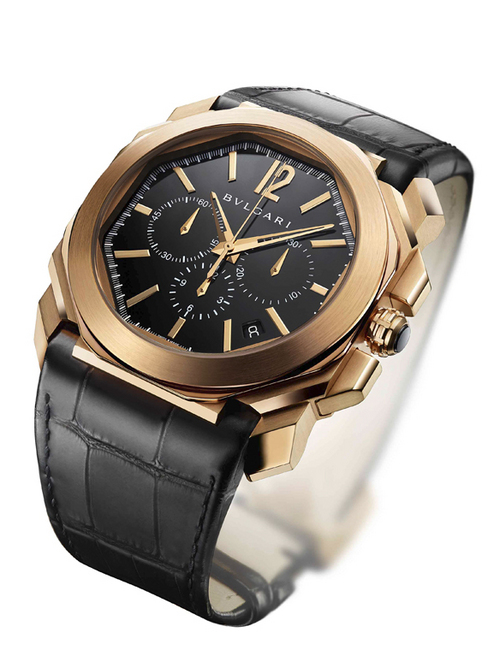 獨一無二的錶殼構造自然應由同等卓越的機械裝置驅動:BVL Calibre 328是一款整合式高振頻(每小時振頻36,000次)自動上鏈導柱輪計時機芯,可提供50小時動力儲存。Octo Chronograph 計時碼錶備有三個款式:18K玫瑰金錶殼配鱷魚皮錶帶;實鋼錶殼配鱷魚皮錶帶;以及實鋼錶殼配精鋼錶鏈。Octo手錶系列完美反映BVLGARI對男性豪邁風格的演繹,滿載魅力與個性。自2012年面世以來,Octo手錶已為男士手錶奠下新規範,最新的Octo Chronograph 計時碼錶將一如系列中的現有錶款,在云云傑出手錶中穩穩佔上一席位。