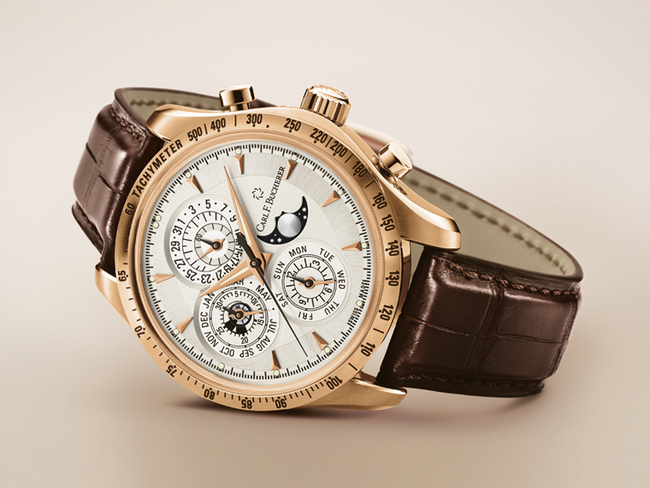 對鍾情萬年曆工藝的錶迷來說,寶齊萊馬利龍萬年曆計時碼錶將萬年曆與計時兩大功能合一,可謂時 計工藝典範:12 時位置的日期顯示、6 時位置的星期顯示、9 時位置的月份及閏年顯示以及 3 時位置月相顯示,百年精准無誤,這枚寶齊萊獨有的機芯更兼具飛返計時功能,錶盤外緣有測速計刻度,與品牌堅守的實用功能為本理念一致。時計以Vaucher機芯廠研製的機芯為基礎,但細節修飾則秉承寶齊萊一貫本色。