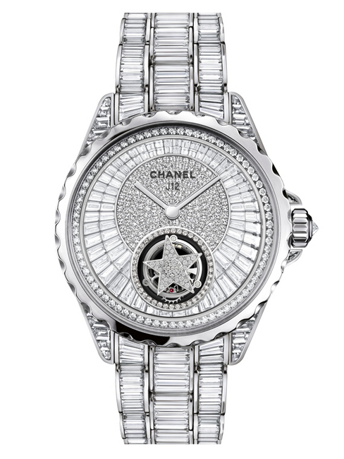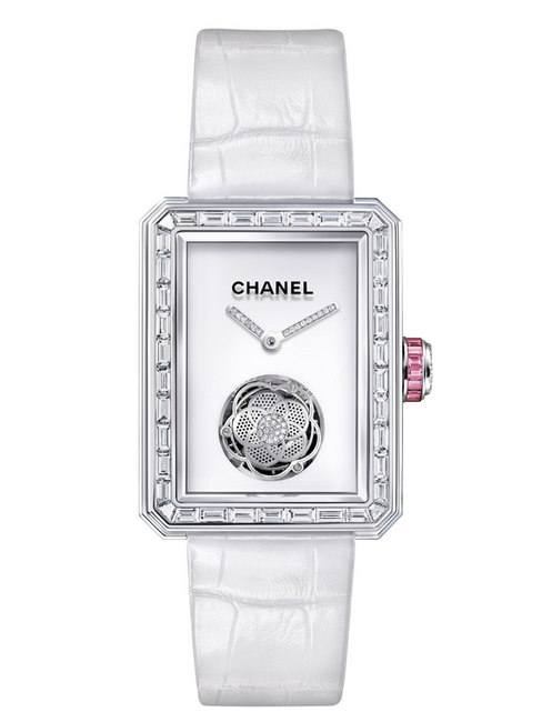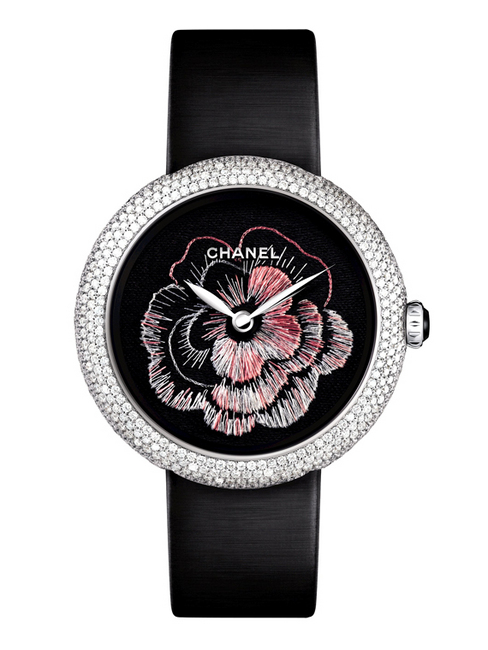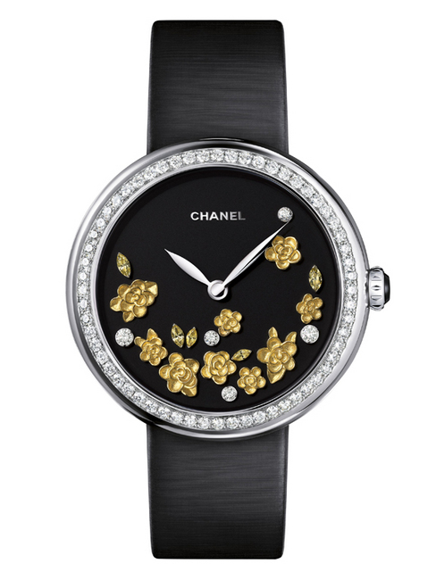 暨2012年CHANEL與愛彼錶廠(Audemars Piguet)高級研發部門製錶大師Renaud & Papi攜手合作推出Première飛行陀飛輪手錶後,進而將飛行陀飛輪機芯搭載至J12,設計出全新J12飛行陀飛輪頂級珠寶手錶;除了以往僅以高科技精密陶瓷呈現的Première Triple Row手錶,回歸經典延伸出皮革穿鍊款式外,Mademoiselle Privé手錶系列自2012年首度面世以來,不斷以各式材質與藝術技法,創造出品牌各式經典元素。去年首度與品牌旗下刺繡工坊Maison Lesage 合作,運用多彩絲線融合針畫工藝技術繡製錶面,並榮獲2013年日內瓦鐘錶大賞-年度最佳藝術工藝獎,今年Mademoiselle Privé,新款手錶除了既有的琺瑯彩繪表現手法外,更加入了珍珠母貝雕刻與23K黃金精雕工藝,立體化的呈現將品牌的手錶精髓發揚光大,也奠定了CHANEL手錶致力於專業製錶藝術殿堂的決心。