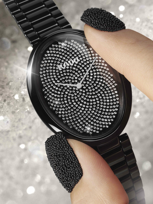 去年錶展中成功塑造話題的Esenza Ceramic Touch在今年更加閃耀動人!有別於以往,依莎系列高科技陶瓷觸控Fibonacci滿天星限量珠寶錶除了擁有輕柔優美的橢圓形曲線外,更以Fibonacci螺旋狀在錶盤上綴滿534顆美鑽(0.694克拉),勾勒出類似花朵的結構圖,展現該女錶的萬變之美。在驚嘆完美運用數學元素的同時,更揭示了隱藏在這款出色鑽石手錶背後所蘊含的科技。依莎系列採無錶冠設計,只要透過手指在錶殼邊緣優雅按、滑即能調整時間,完全不會損害到女性的美甲,精密複雜的製作過程也展現全球首創陶瓷觸控技術的成功,此款Fibonacci珠寶錶完美的結合陶瓷與鑽石,限量300只,每只均配有獨立編號,是雷達表又一款具有突破性的精緻女錶。