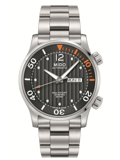 經過緞面拋光打磨的不鏽鋼錶殼環繞著煙煤灰色錶盤,仿佛悉尼海港大橋的鋼筋鐵骨;縱向日內瓦波紋增強了手錶的立體感,營造出大海粼粼波光的意境。此款潛水錶還配備了可旋轉錶圈,第一刻鐘的刻度別出心裁地經橙色Super-LumiNova®夜光處理,醒目的橙色既體現了美度品牌的標誌性顏色,同時也確保在海洋環境中更為清晰的讀取識別。作為探索深海世界的有力陪伴,該款手錶還特別採用了雙螺旋式錶冠,分別位於2點鐘及4點鐘位置。2點鐘位錶冠用於調節潛水錶圈,記錄潛水時間,助你順利完成奇妙的水下探險之旅;另一個位於4點鐘位置錶冠,用於調校時間和為手錶上弦。細細打磨的指針與刻度都經過Super-LumiNova®夜光處理,保證在夜間或是水下暗處同樣讀數清晰。雙面防眩目藍寶石鏡面也讓讀取時間更為輕鬆便利。