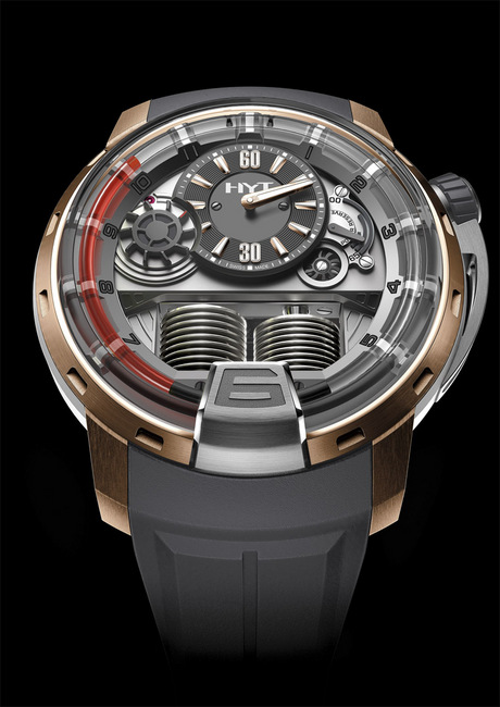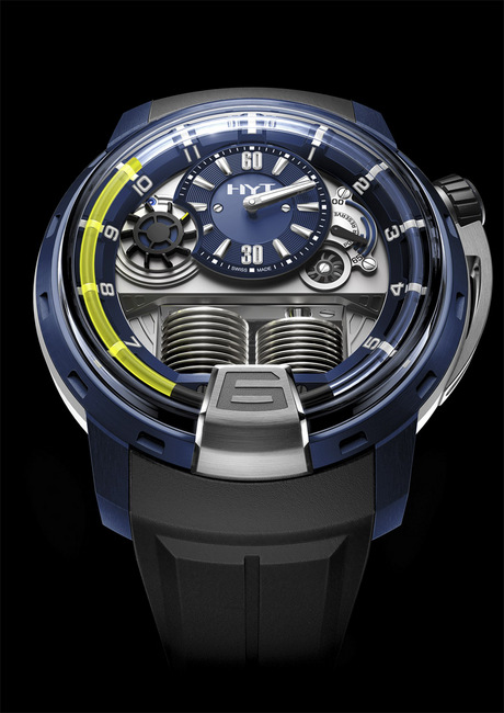 此概念曾被認為是超乎現實的完美製錶概念,然而,HYT卻打破了傳統界限,衝破所有障礙,以簡單的手錶構造理念:在導管的兩個末端分別裝上兩個有彈性的貯液槽,創製出H1手錶。當中的一個水庫儲存著螢光液體,而另一水庫則儲存著透明黏性液體。而兩款液體中分子的排斥力,令兩款液體互相排斥而不會混和。兩個貯液槽設於6時位置,當其中一個壓縮時,另一個將膨脹,反之亦然,形成液體於導管內運行。隨著時間的流逝,於導管內顯示出的螢光液體容量隨之增加,而兩款液體的相遇點正是顯示出小時位置;而當時間達6時的時候,螢光液體將返貯液槽內。如風箱狀盒子的兩個貯液槽由高耐力、靈活的電鍍合金製成,其活動均由活塞驅動。就是這樣的結構,促使液體能運用於機械手錶內。
