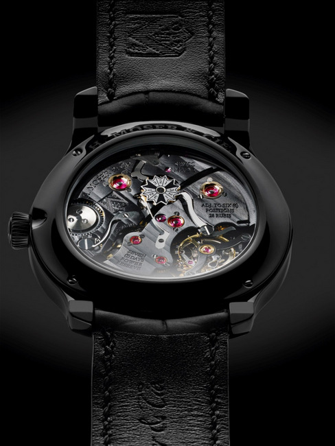 在手錶設計中,黑色往往用以突顯前衛和高雅,亦是彰顯個性的選擇。它既傳統又時髦,或低調華麗或酷勁十足,且從不俗套。如今,搭載了Moser Perpetual一以貫之的精密機芯及獨創性設計,萬年曆黑色特別款手錶驚艷亮相2014年巴塞爾鐘錶展。黑色面盤綴以玫瑰金時標和指針,既進一步突顯了手錶歷久彌新的風格,也增強了可讀性。偏心秒盤則盡情彰顯無可挑剔的金質感,以停秒功能指示時間。啞光黑色飾面的機芯設置了深黑色的擒縱板橋,令擒縱機構由內而外幽光隱隱。這種黑色前衛風格還延伸至啞光修飾的碳塗層鱷魚皮錶帶,極富質感和舒適觸感。