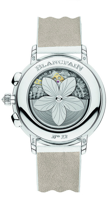 此款手錶採用38.6毫米的表徑,搭載BLANCPAIN Calibre 26F8G自動上鍊機械機芯,其零件數達到495個,防水深度可達30米。透過藍寶石水晶錶背不僅可一睹巧奪天工的內部構造及機芯真容,精緻舒展的花瓣形自動擺陀亦可一覽無餘。