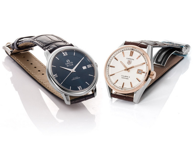 ▲ 左為OMEGA De Ville Prestige Co-Axial,右為TAG HEUER Carrera Calibre 5 Automatic。