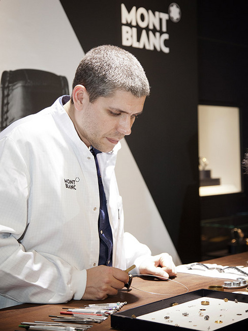 現場製錶大師解說手錶的製作過程,亦是活動的一大亮點!擺上一桌的製錶工具以及機芯零件,再現場示範手工打磨等精彩的製作工藝,令人目不暇給。製錶師也直接針對手錶的內部構造加以詳述,貴賓們更親身戴上製錶師的放大鏡,觀賞由完美工藝所製作的機芯,貼身鑑賞來自白朗峰的傳奇魅力!