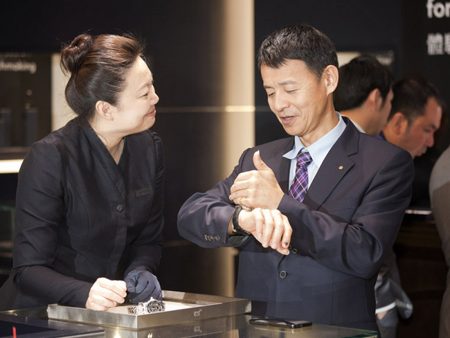 ▲不只看,更可試戴最新錶款!看來貴賓佩戴後相當滿意呢(笑)。
