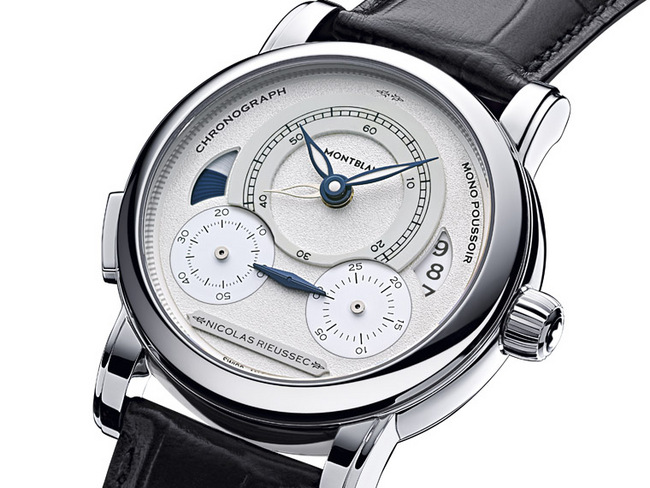 ▲Nicolas Rieussec計時碼錶年度致敬限量款,以白色計時圓盤搭配菱形藍鋼指針,取代過往的微笑錶橋設計,