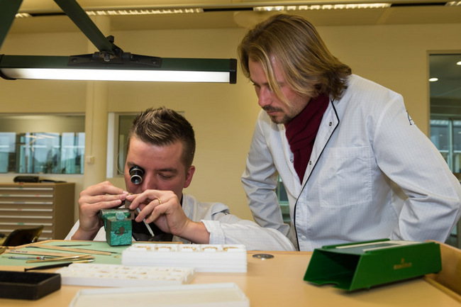 ▲ 製錶工匠講解製錶過程給法國頂尖職業高爾夫球手Victor Dubuisson