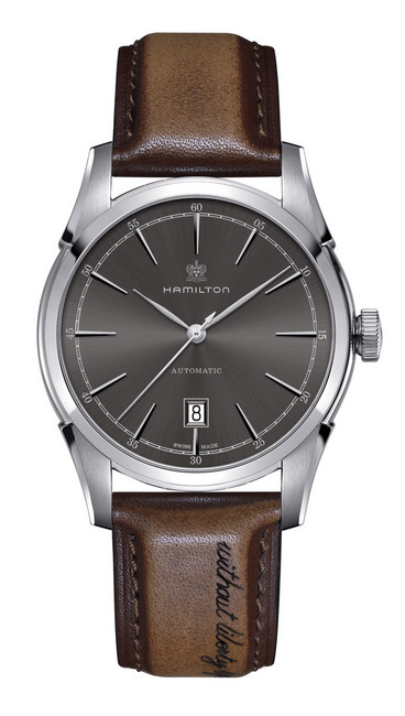 自由氣概自動機械手錶是自由美國精神與精密瑞士工藝完美融合的佳作。手錶外殼線條精緻爽朗,採用42mm的大開面設計,質感十足。錶盤設計簡潔,裝配柳葉形指針和細長的水滴形刻度,飾以充滿歷史感的鐵軌紋,經典大氣;12點鐘位置印有自由氣概系列獨有的HAMILTON品牌復古紋章,與手工打磨的復古牛皮錶帶一起展現懷舊美式風韻。手錶搭載了2014年新款H10 HAMILTON自主機芯,擁有超過3天的動力儲存,使手錶在閑置狀態下度過周末。透過錶背的藍寶石鏡面,螺旋紋和珍珠紋相間的精湛打磨工藝一覽無餘,一體成型的自動陀飾以鏤空設計,美觀而個性。這款兼具設計與內涵的手錶,源於歷史,演繹當下,是精心敢為的都市精英絕佳的腕上伙伴。
