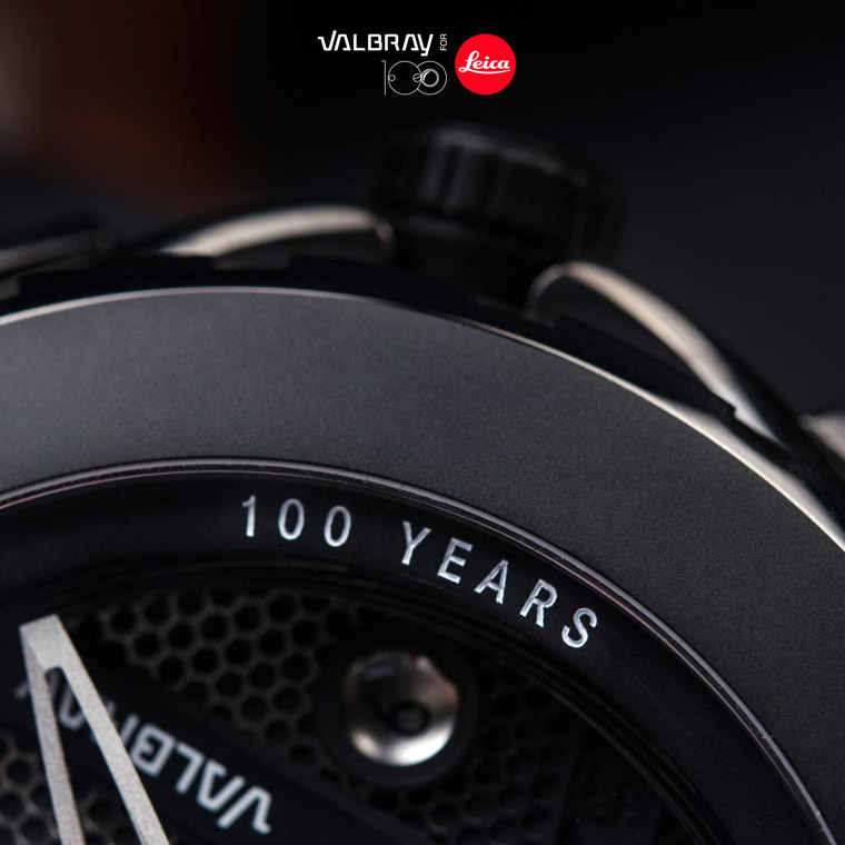 LEICA今年適逢攝影歷史邁入100週年,來自瑞士Lausanne的知名錶廠Valbray,也與LEICA合作,發表了一只特別的限量錶款:EL1百週年紀念錶。此限量紀念錶在錶冠上刻有LEICA的商標,而在背面則刻有百週年紀念標誌,全球限量100組(兩色各50組)。在此限量錶款置入了一組特別的設計,在錶面上有16片黑色金屬葉,當旋轉錶圈時,此金屬葉片會如鏡頭光圈般的開闔,稱之為「Oculus diaphragm system」。當光圈全開時,金屬葉片將完全隱藏並露出錶面的設計;然而即使光圈關閉時,也可看到針、分及碼錶指針。