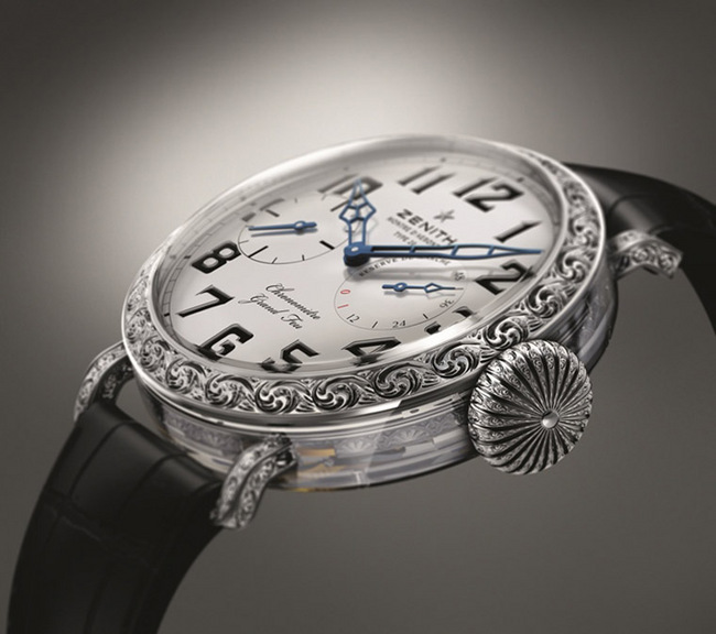 這款手錶的誕生是鐘錶歷史上值得紀錄的一筆,ZENITH品牌沿革與人類航空發展史息息相關,而這款手錶正凝聚了品牌的精神及資源,是ZENITH果敢創新精神與經典製錶工藝的最佳寫照。這是首款由藍寶石幻化成形的手錶,錶殼直徑達60毫米。ZENITH PILOT飛行員系列的最新款手錶搭載手工鏤雕鐫刻的歷史傳奇機芯,並飾以大明火琺瑯錶面,註定將成為手錶經典之作,它是人人夢寐以求的精品,全球僅限量發行10枚。