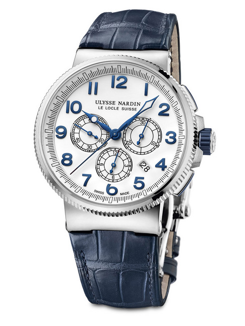征服海洋、體現航海精神的魅力時計獨創航海計時碼錶Marine Chronograph Manufacture,復古的三眼計時面盤設計重現航海儀器的美感:直徑43毫米的面盤搭配阿拉伯數字時標,讀時更清晰,並增添運動感,纖細的特色時分秒針,為錶款注入優雅氛圍;錢幣紋錶圈及旋入式錶冠,保証完美防水性能,完整面盤線條;鈦金屬與不銹鋼結合錶殼、厚實的錶耳增加手錶存在感與絕對的金屬剛強質感。