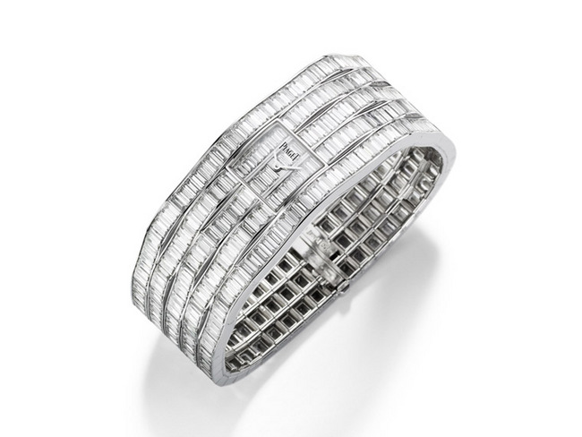 ▲ Limelight Couture Précieuse手鐲手錶,鑲嵌474顆矩形美鑽搭載伯爵製56P石英機芯,簡約造型,令人目不轉睛。建議售價 NTD,100,000元