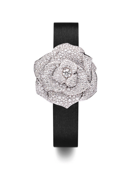 ▲PIAGET Rose 鑲鑽神秘手錶共鑲飾錶殼鑲嵌708顆圓形美鑽搭載伯爵製56P石英機芯。建議售價 NTD,256,000元