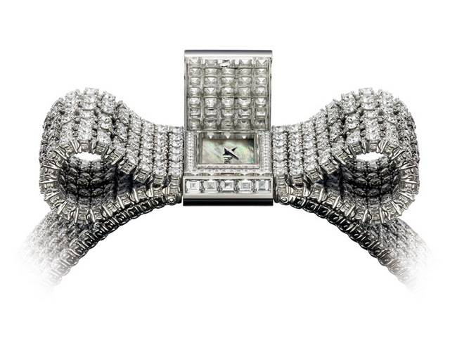 ▲ Limelight 蝴蝶結神秘手錶,錶帶鑲嵌770顆圓形美鑽,搭載伯爵製56P石英機芯。建議售價 NTD,900,000元
