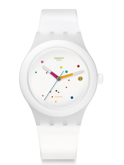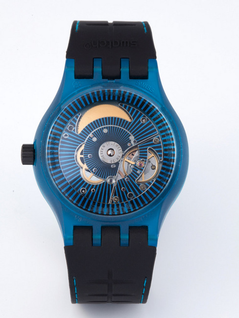 塑膠材質/SISTEM51自動上鍊機芯/時、分、秒、日期顯示/塑膠鏡面、透明底蓋/防水 30米/錶徑41mm