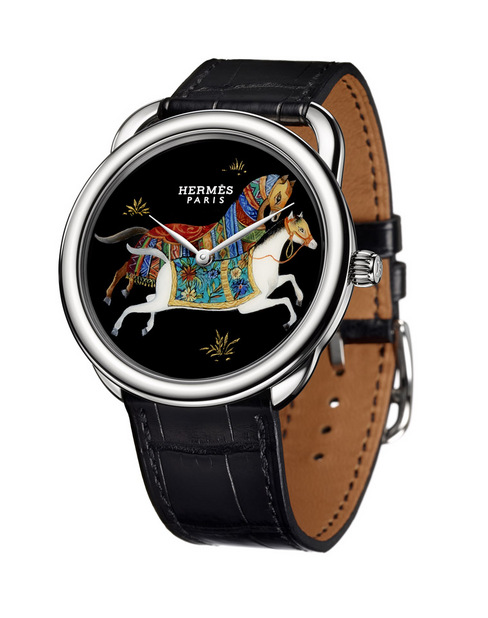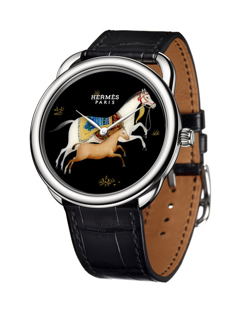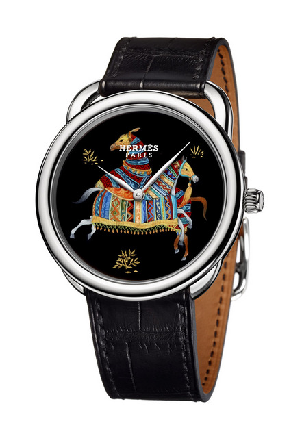 ▲ Arceau Cheval d’Orient 漆繪工藝手錶,華美面盤搭配霧面黑色鱷魚皮,成為最頂級的藝術品。