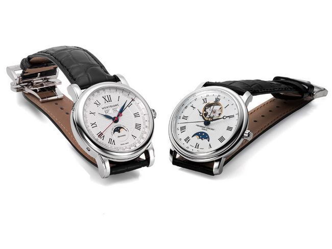 ▲ 左為MONTBLANC Star Roman Quantieme Complet "Carpe Diem",右為FRÉDÉRIQUE CONSTANT Classics Moonphase Automatic.