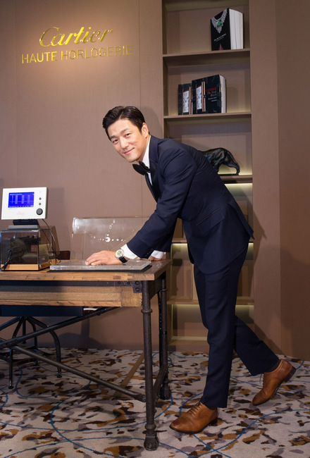 ▲ 池珍熙參觀卡地亞高級製錶系列記者會展場,欣賞現場精湛作品以及製錶師的工作檯。