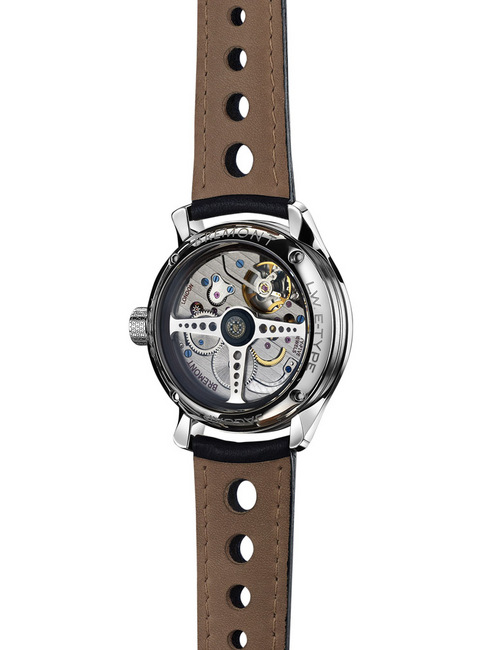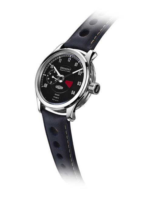 ▲ 手錶直徑43毫米,黑色面盤仿照Lightweight E-type轉速錶製作,並搭載BREMONT自製天文台認證自動機芯。