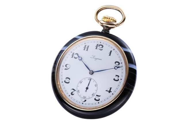 ▲ 浪琴表活動展出的1910年瑪瑙石鑲嵌懷錶