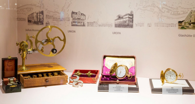 當中的展品包括德國格拉蘇蒂鎮製錶業先軀Julius Assmann於約1890年間所製造的計時懷錶、二次大戰後格拉蘇蒂鎮所有製錶廠合併為國營企業「人民的公司」期間所製造的計時手錶,以及於2001年榮獲德國「全年最佳手錶」大獎,全球首款可倒數計時兼發出三下提醒聲響的複雜機械手錶——PanoRetroGraph等等。